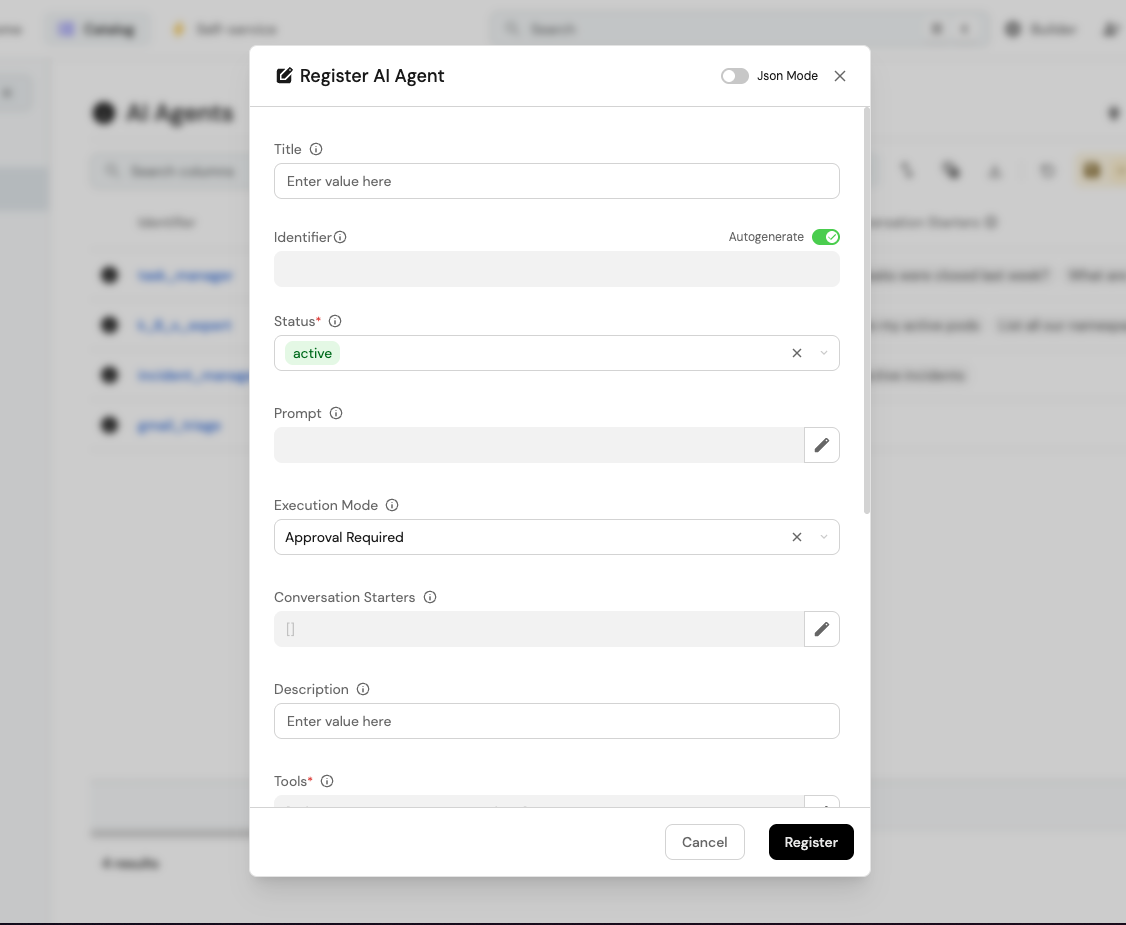 For details on manual approval vs automatic execution patterns, see Port AI tools and execution modes.
