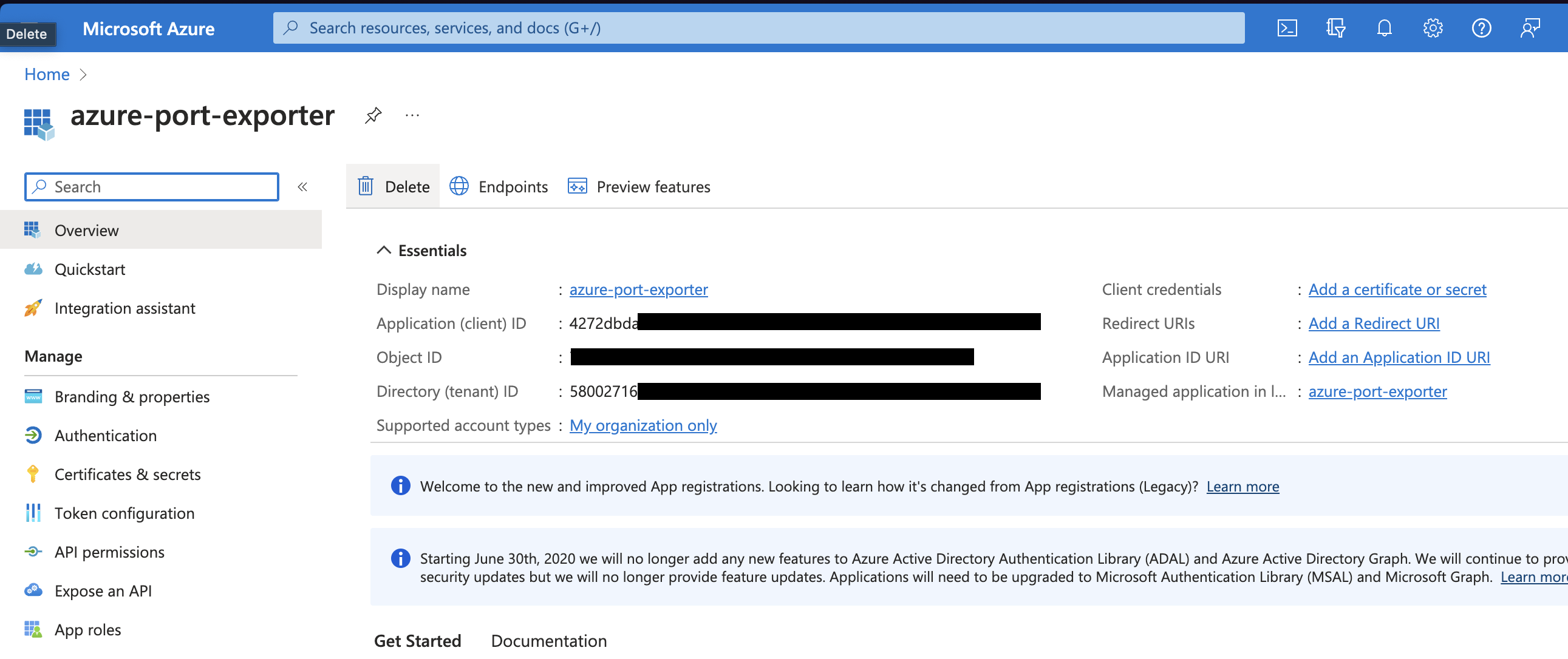 Create a client secret for the App Registration.