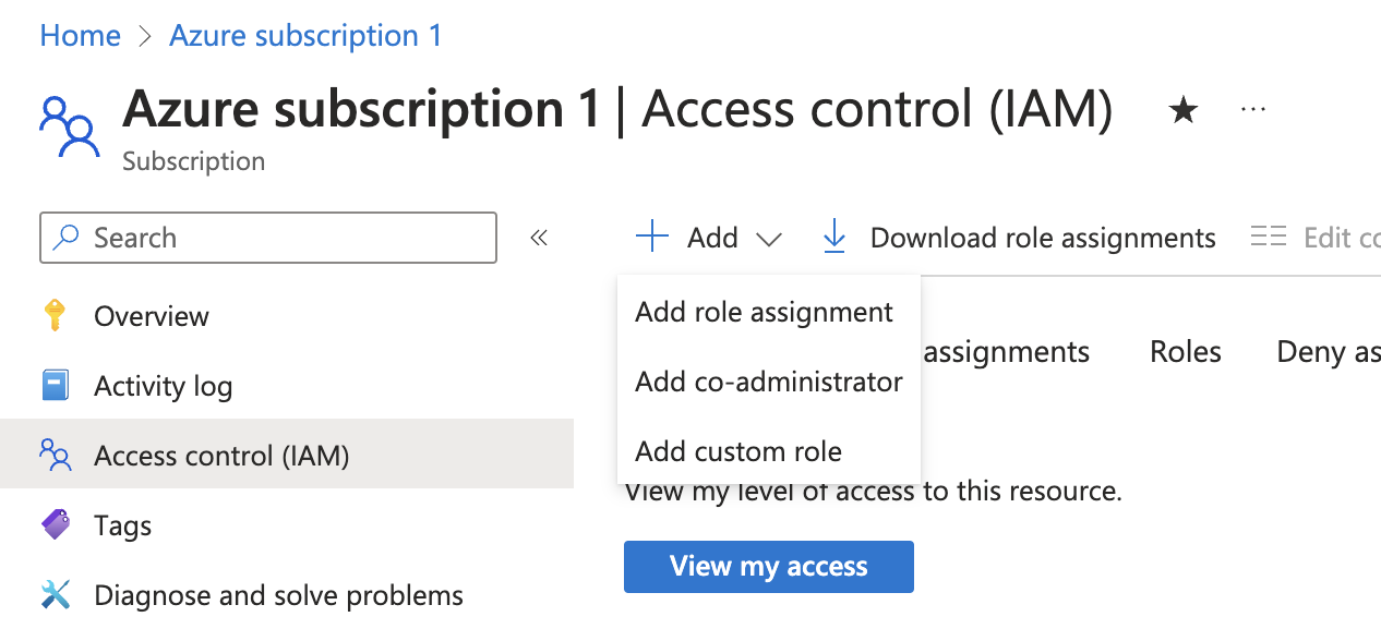 Access control (IAM)section of the subscription you want to ingest resources from.