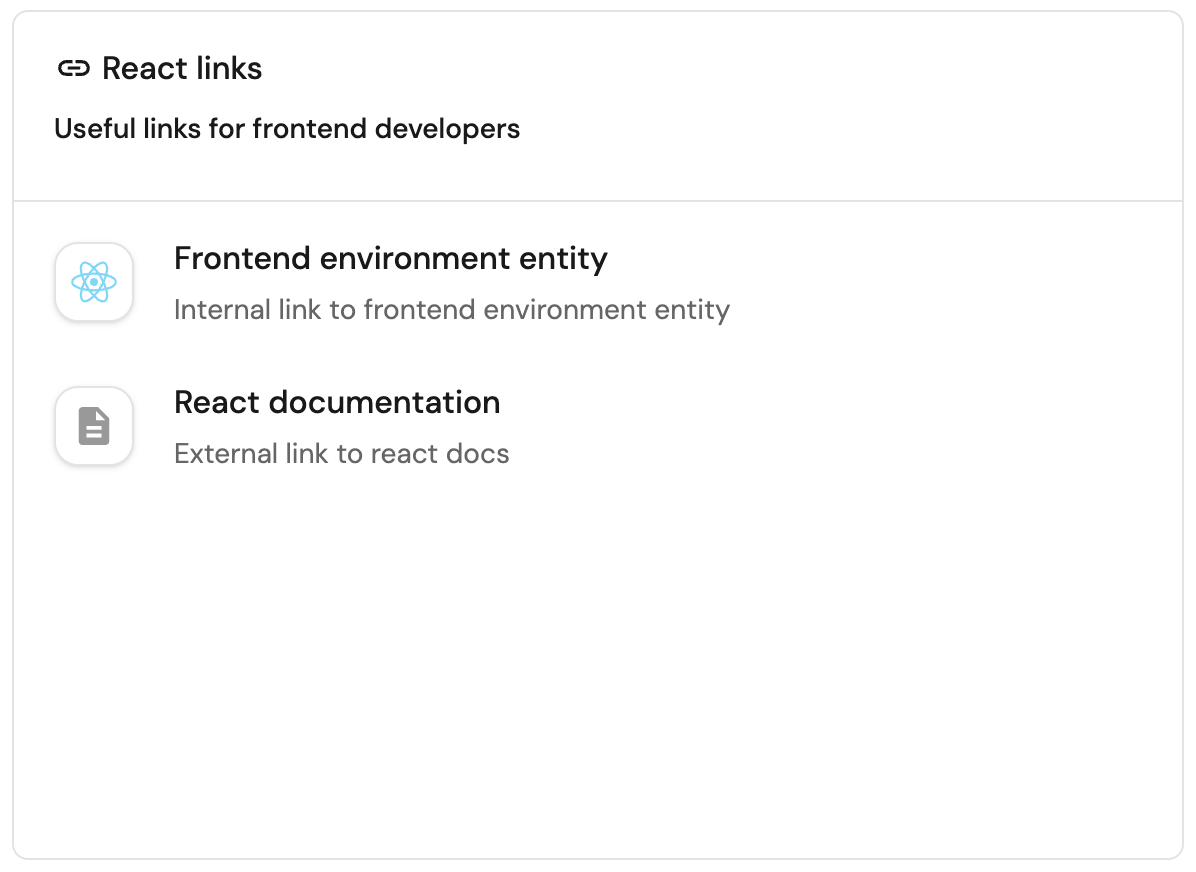 • Internal links - links to internal pages in your portal, such as an entity page, a catalog page, an entity's audit log page, etc.