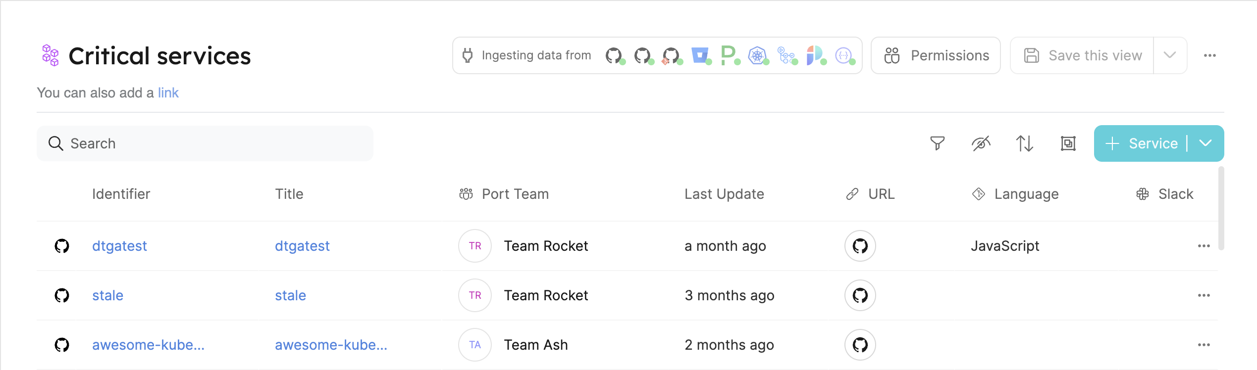 Port provides a free-text search option on tables. This will search all of the entities' properties and display the entities that match the query.