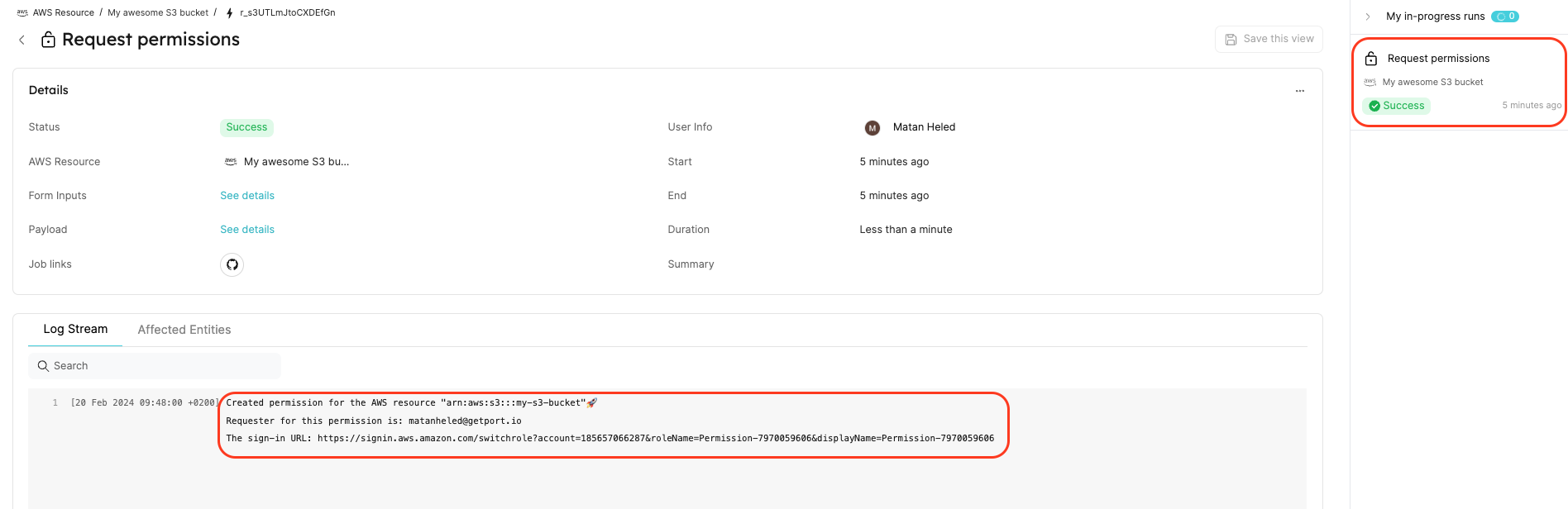 You are now signed in to your new role, which has permissions as defined in the Port action! ๐Ÿฅณ