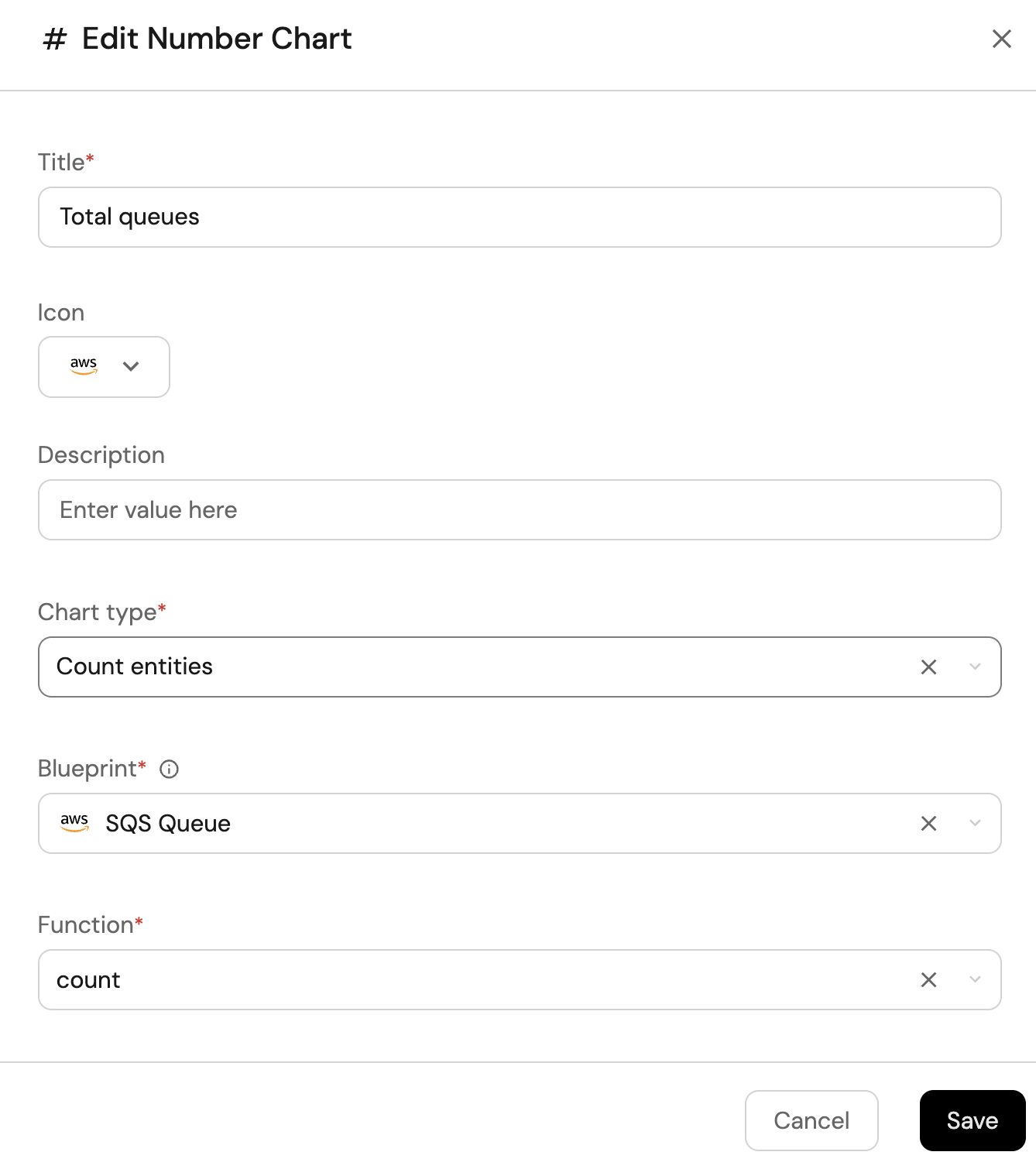 Count entitiesChart type and choose SQS Queue as the Blueprint. -