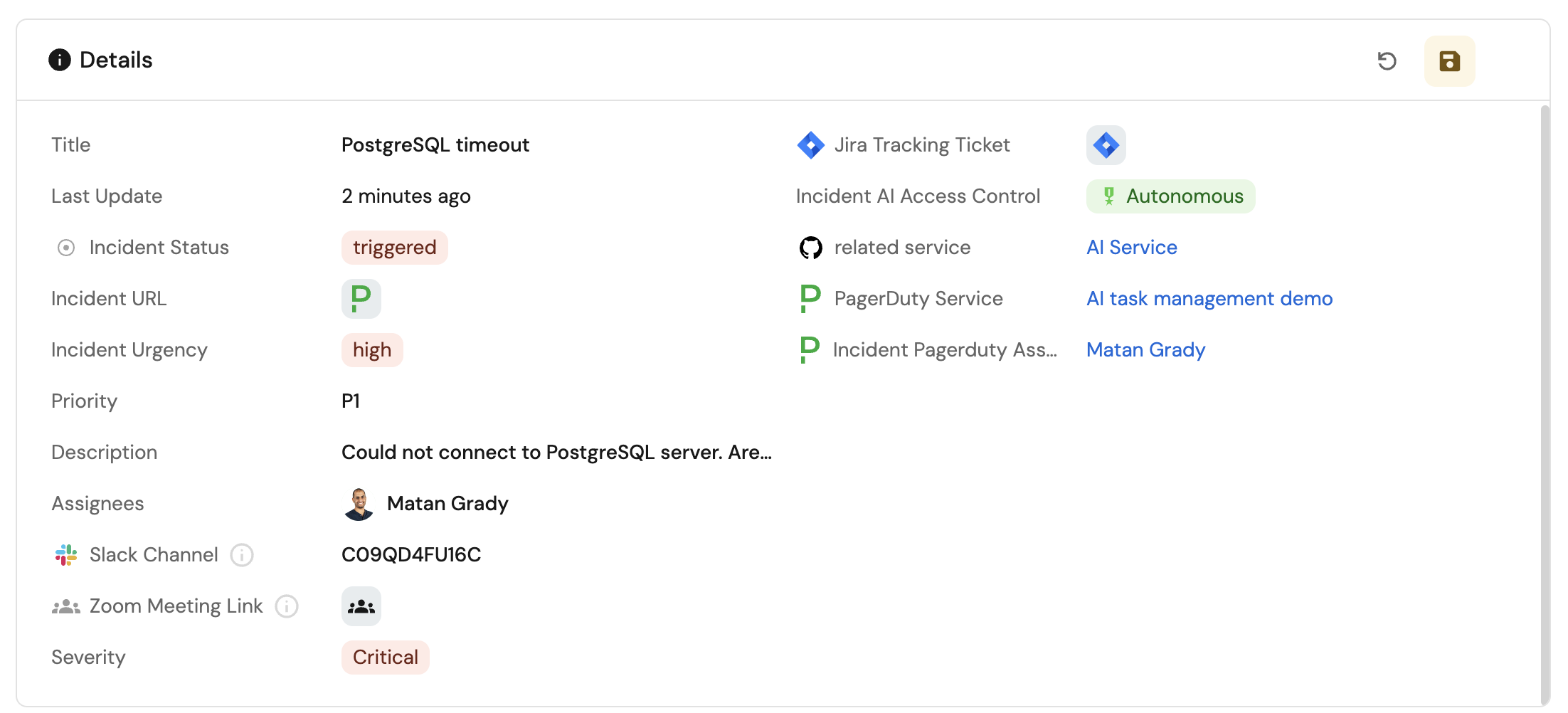 When incidents occur, engineers waste critical minutes manually coordinating response logistics instead of fixing the actual problem. They need to create dedicated Slack channels, set up Zoom meetings for war rooms, create tracking tickets in Jira, and notify the right people โ€” all while gathering context about affected services.