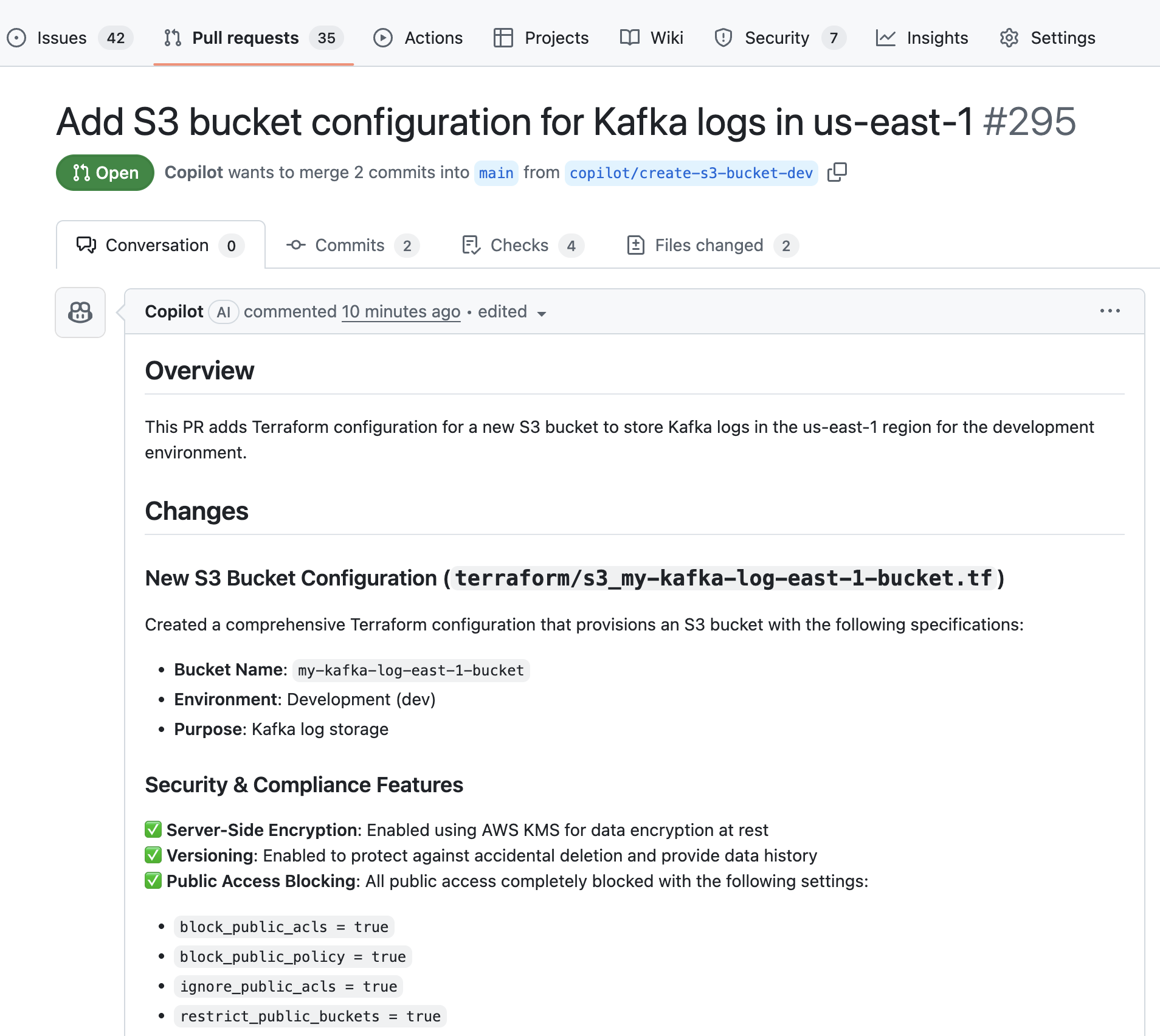 3. Copilot generates Terraform code based on the detailed technical requirements
